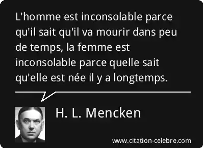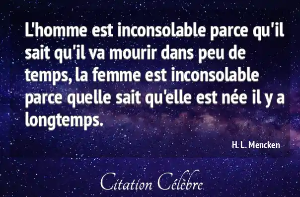 L'homme est inconsolable parce qu'il sait qu'il va mourir dans peu de temps, la femme est inconsolable parce quelle sait qu'elle est née il y a longtemps.