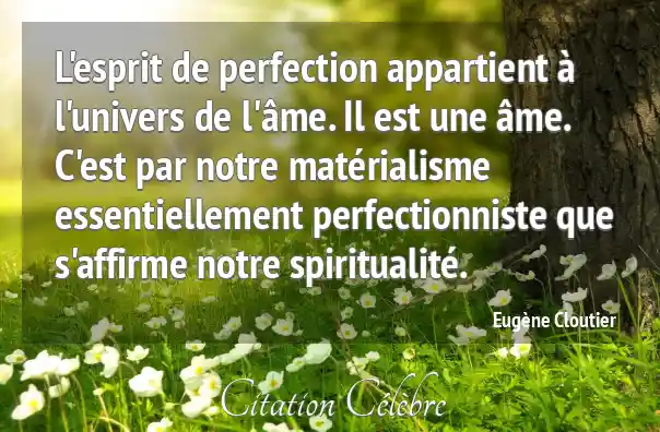 L'esprit de perfection appartient à l'univers de l'âme. Il est une âme. C'est par notre matérialisme essentiellement perfectionniste que s'affirme notre spiritualité.