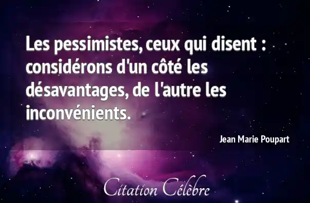 Les pessimistes, ceux qui disent : considérons d'un côté les désavantages, de l'autre les inconvénients.