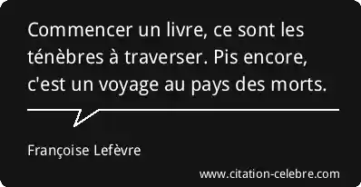 Commencer un livre, ce sont les ténèbres à traverser. Pis encore, c'est un voyage au pays des morts.