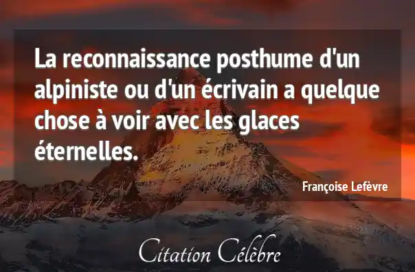 La reconnaissance posthume d'un alpiniste ou d'un écrivain a quelque chose à voir avec les glaces éternelles.