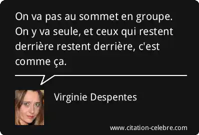 On va pas au sommet en groupe. On y va seule, et ceux qui restent derrière restent derrière, c'est comme ça.