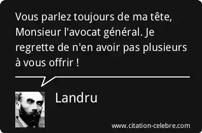 Vous parlez toujours de ma tête, Monsieur l'avocat général. Je regrette de n'en avoir pas plusieurs à vous offrir !
