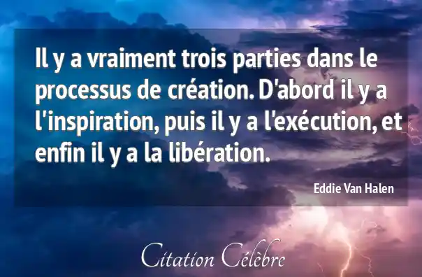 Il y a vraiment trois parties dans le processus de création. D'abord il y a l'inspiration, puis il y a l'exécution, et enfin il y a la libération.