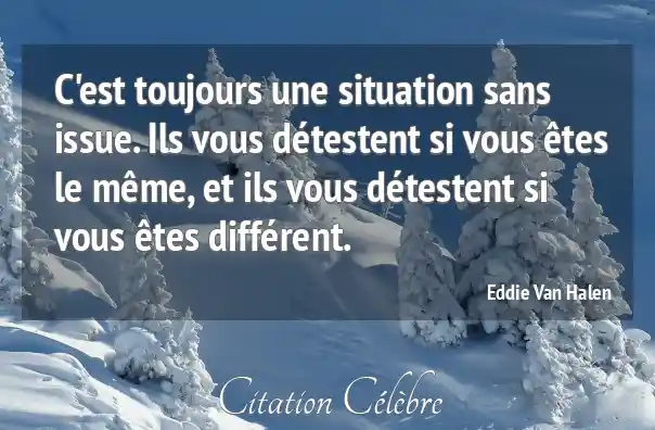 C'est toujours une situation sans issue. Ils vous détestent si vous êtes le même, et ils vous détestent si vous êtes différent.