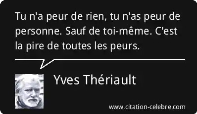 Tu n'a peur de rien, tu n'as peur de personne. Sauf de toi-même. C'est la pire de toutes les peurs.