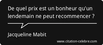 De quel prix est un bonheur qu'un lendemain ne peut recommencer ?
