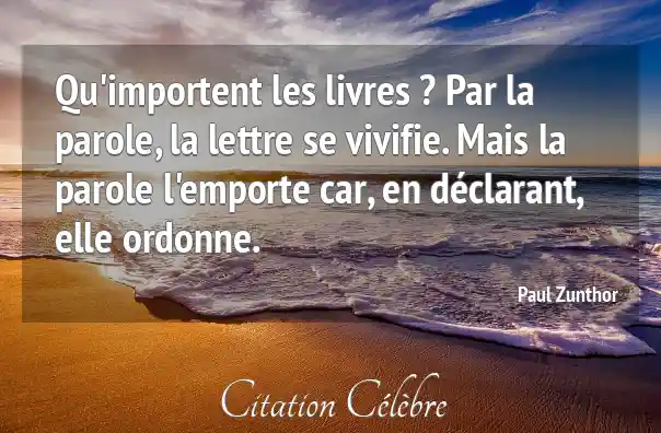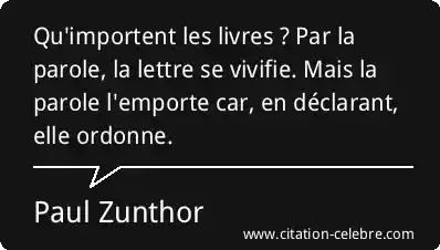 Qu'importent les livres ? Par la parole, la lettre se vivifie. Mais la parole l'emporte car, en déclarant, elle ordonne.