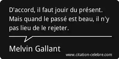 D'accord, il faut jouir du présent. Mais quand le passé est beau, il n'y pas lieu de le rejeter.