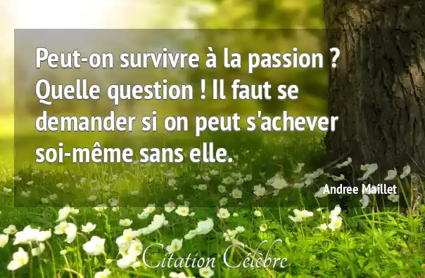 Peut-on survivre à la passion ? Quelle question ! Il faut se demander si on peut s'achever soi-même sans elle.