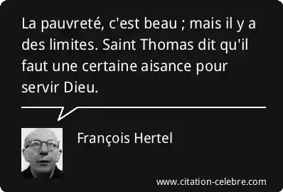 La pauvreté, c'est beau ; mais il y a des limites. Saint Thomas dit qu'il faut une certaine aisance pour servir Dieu.