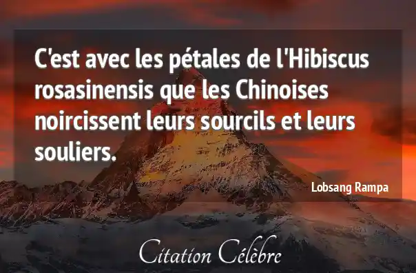 C'est avec les pétales de l'Hibiscus rosasinensis que les Chinoises noircissent leurs sourcils et leurs souliers.