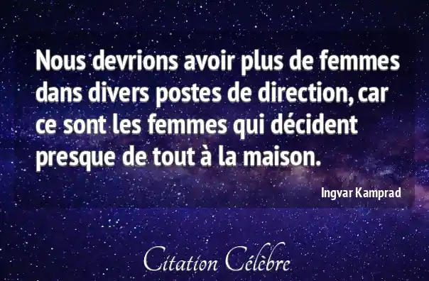 Nous devrions avoir plus de femmes dans divers postes de direction, car ce sont les femmes qui décident presque de tout à la maison.