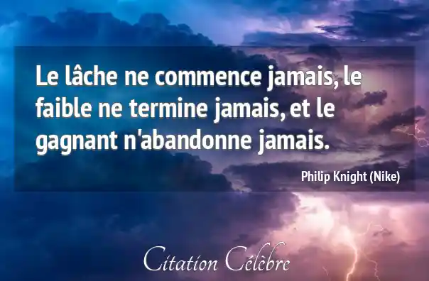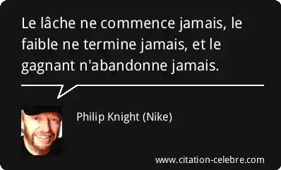 Le lâche ne commence jamais, le faible ne termine jamais, et le gagnant n'abandonne jamais.