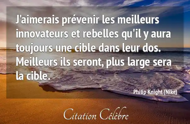 J'aimerais prévenir les meilleurs innovateurs et rebelles qu'il y aura toujours une cible dans leur dos. Meilleurs ils seront, plus large sera la cible.