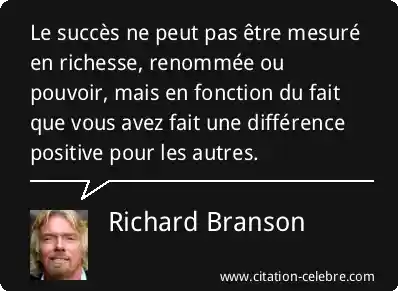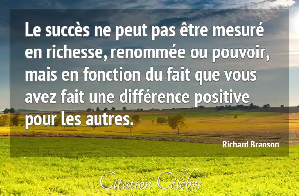 Le succès ne peut pas être mesuré en richesse, renommée ou pouvoir, mais en fonction du fait que vous avez fait une différence positive pour les autres.
