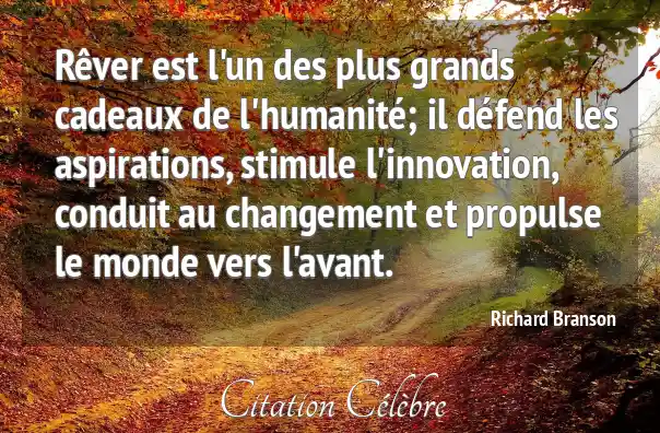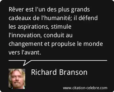 Rêver est l'un des plus grands cadeaux de l'humanité; il défend les aspirations, stimule l'innovation, conduit au changement et propulse le monde vers l'avant.