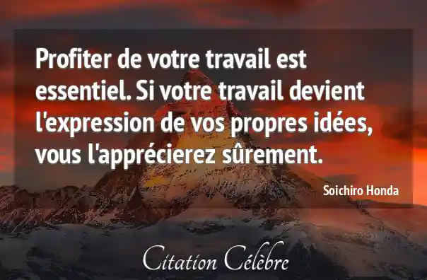 Profiter de votre travail est essentiel. Si votre travail devient l'expression de vos propres idées, vous l'apprécierez sûrement.