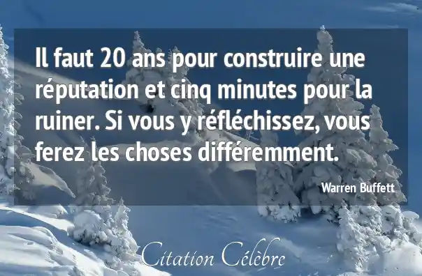 Il faut 20 ans pour construire une réputation et cinq minutes pour la ruiner. Si vous y réfléchissez, vous ferez les choses différemment.