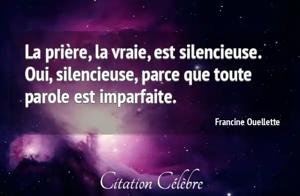 La prière, la vraie, est silencieuse. Oui, silencieuse, parce que toute parole est imparfaite.