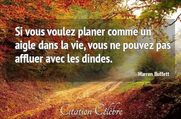 Si vous voulez planer comme un aigle dans la vie, vous ne pouvez pas affluer avec les dindes.