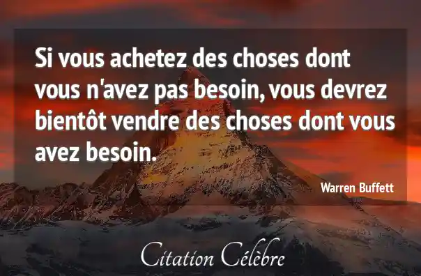 Si vous achetez des choses dont vous n'avez pas besoin, vous devrez bientôt vendre des choses dont vous avez besoin.