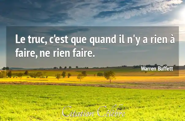 Le truc, c'est que quand il n'y a rien à faire, ne rien faire.