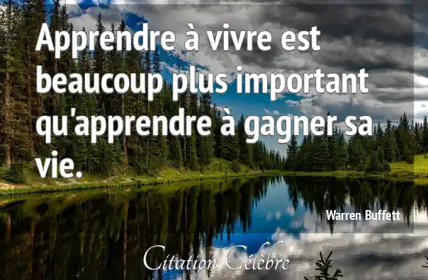 Apprendre à vivre est beaucoup plus important qu'apprendre à gagner sa vie.