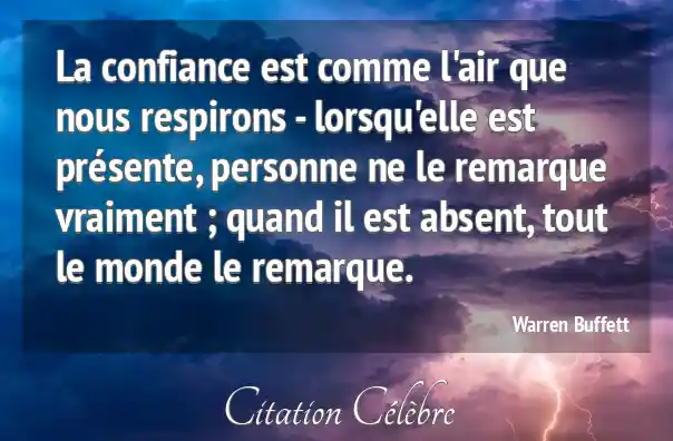 La confiance est comme l'air que nous respirons - lorsqu'elle est présente, personne ne le remarque vraiment ; quand il est absent, tout le monde le remarque.