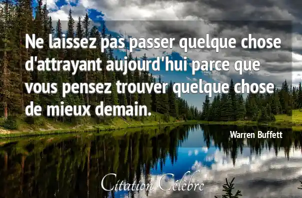Ne laissez pas passer quelque chose d'attrayant aujourd'hui parce que vous pensez trouver quelque chose de mieux demain.