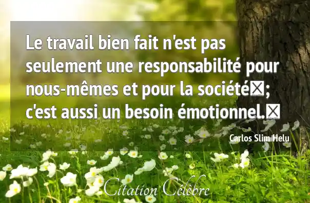Le travail bien fait n'est pas seulement une responsabilité pour nous-mêmes et pour la société ; c'est aussi un besoin émotionnel.