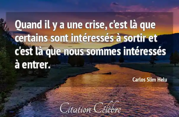Quand il y a une crise, c'est là que certains sont intéressés à sortir et c'est là que nous sommes intéressés à entrer.