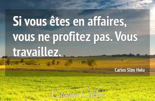 Si vous êtes en affaires, vous ne profitez pas. Vous travaillez.
