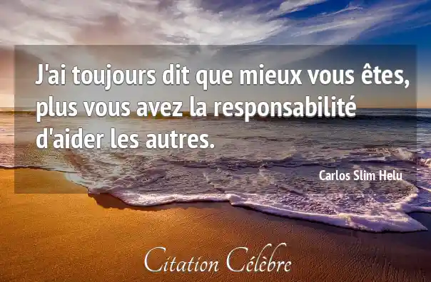 J'ai toujours dit que mieux vous êtes, plus vous avez la responsabilité d'aider les autres.
