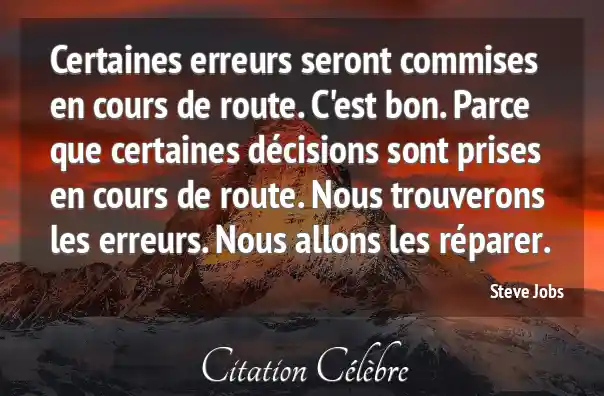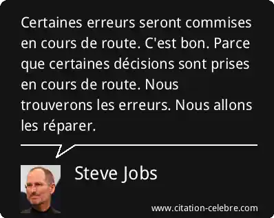 Certaines erreurs seront commises en cours de route. C'est bon. Parce que certaines décisions sont prises en cours de route. Nous trouverons les erreurs. Nous allons les réparer.