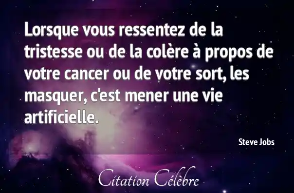 Lorsque vous ressentez de la tristesse ou de la colère à propos de votre cancer ou de votre sort, les masquer, c'est mener une vie artificielle.