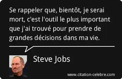 Se rappeler que, bientôt, je serai mort, c'est l'outil le plus important que j'ai trouvé pour prendre de grandes décisions dans ma vie.