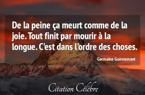 De la peine ça meurt comme de la joie. Tout finit par mourir à la longue. C'est dans l'ordre des choses.