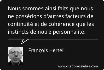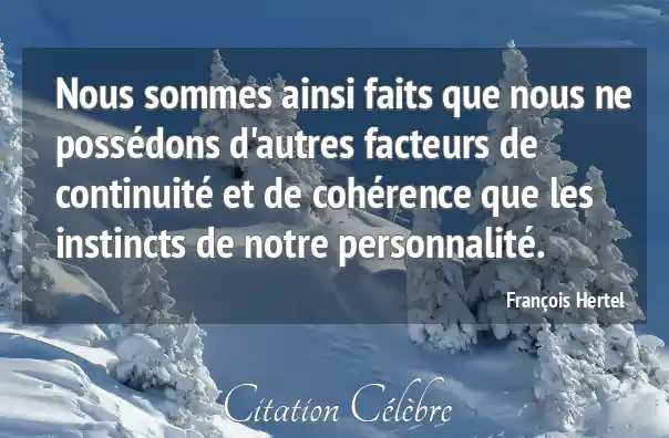 Nous sommes ainsi faits que nous ne possédons d'autres facteurs de continuité et de cohérence que les instincts de notre personnalité.
