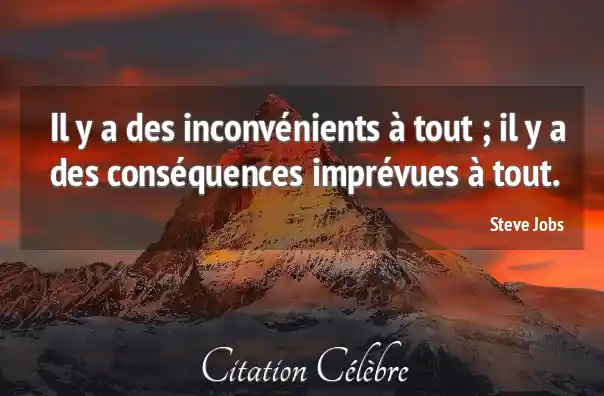 Il y a des inconvénients à tout ; il y a des conséquences imprévues à tout.