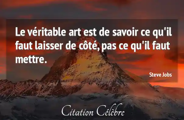 Le véritable art est de savoir ce qu'il faut laisser de côté, pas ce qu'il faut mettre.