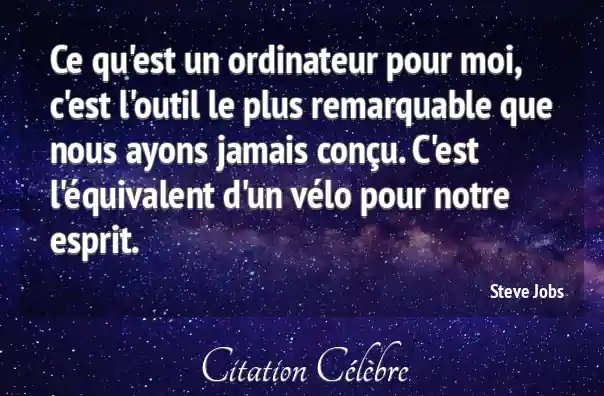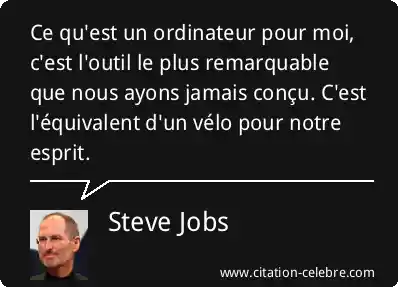 Ce qu'est un ordinateur pour moi, c'est l'outil le plus remarquable que nous ayons jamais conçu. C'est l'équivalent d'un vélo pour notre esprit.