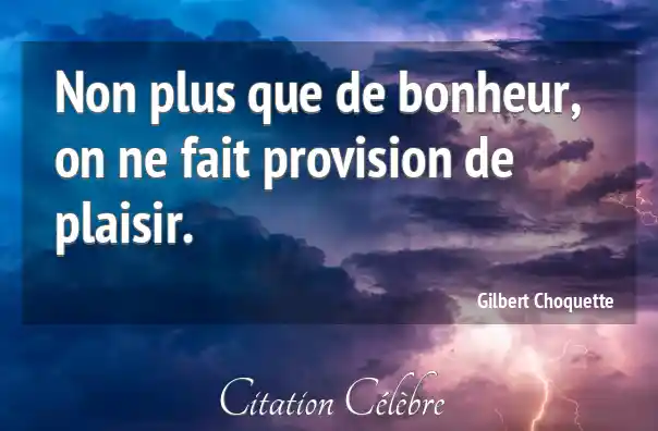 Non plus que de bonheur, on ne fait provision de plaisir.