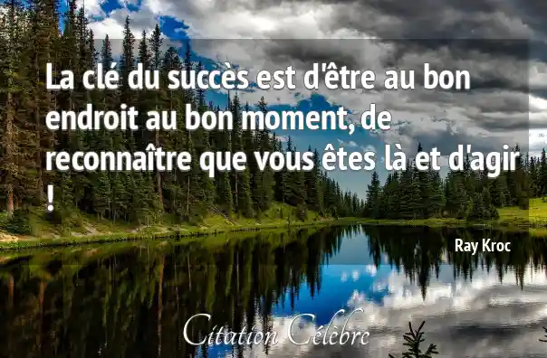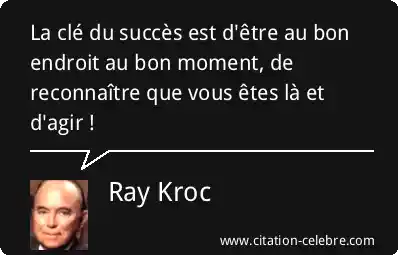 La clé du succès est d'être au bon endroit au bon moment, de reconnaître que vous êtes là et d'agir !