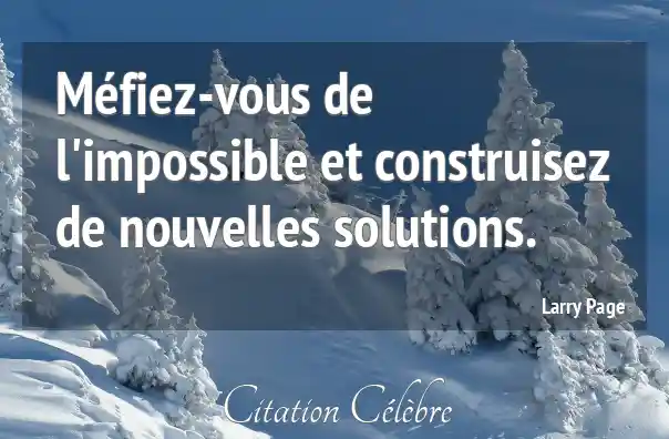 Méfiez-vous de l'impossible et construisez de nouvelles solutions.