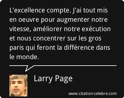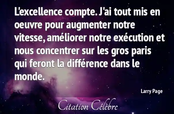 L'excellence compte. J'ai tout mis en oeuvre pour augmenter notre vitesse, améliorer notre exécution et nous concentrer sur les gros paris qui feront la différence dans le monde.