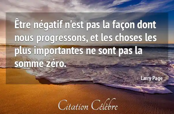 Être négatif n'est pas la façon dont nous progressons, et les choses les plus importantes ne sont pas la somme zéro.
