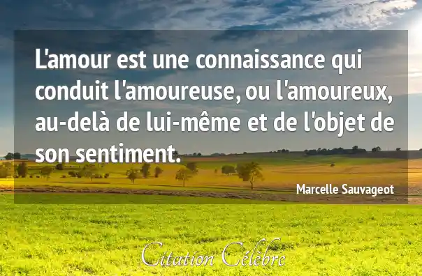 L'amour est une connaissance qui conduit l'amoureuse, ou l'amoureux, au-delà de lui-même et de l'objet de son sentiment.
