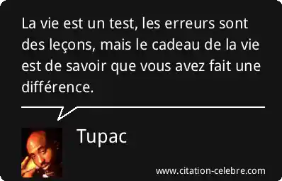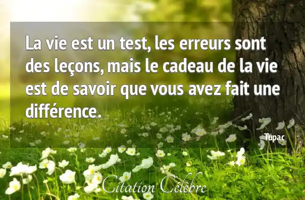 La vie est un test, les erreurs sont des leçons, mais le cadeau de la vie est de savoir que vous avez fait une différence.