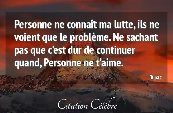 Personne ne connaît ma lutte, ils ne voient que le problème. Ne sachant pas que c'est dur de continuer quand, Personne ne t'aime.